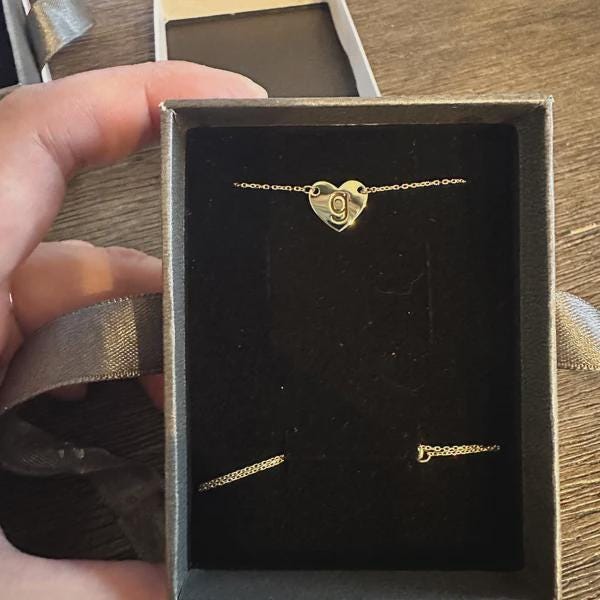 I like my necklace, but I would love it if the heart is much smaller. Other than that, the quality, hand crafted name and customer service are excellent. Highly recommended!