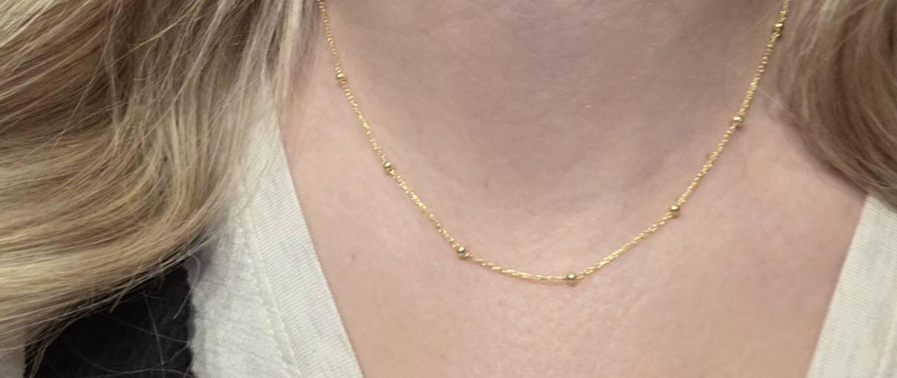 • 18″ Necklace: A common choice for women that sits elegantly on the collarbone.