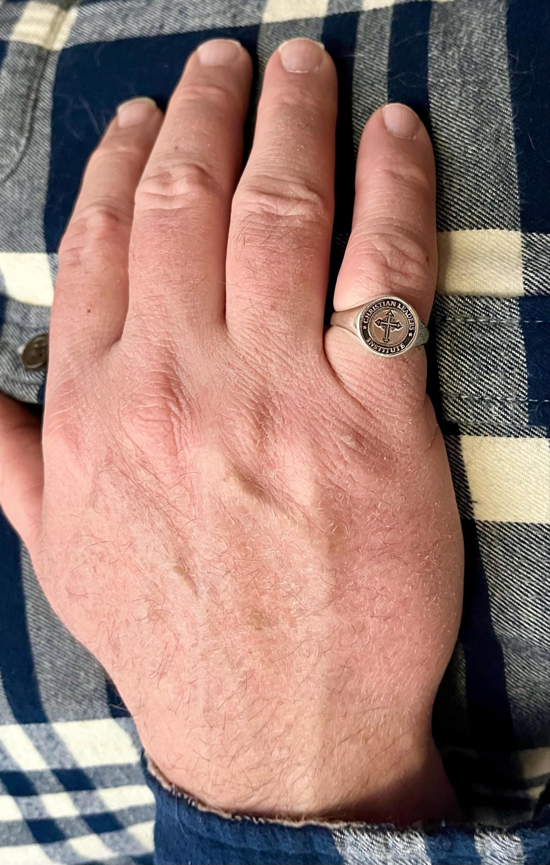 The seller was very responsive and addressed all of my questions. The ring is stunning! I bought this for my husband who wears a size 10. It was a perfect fit. The ring logo was exactly like the one I sent the seller. I have already ordered a second personalized piece of jewelry because it was so well done. 10 out of 10!
